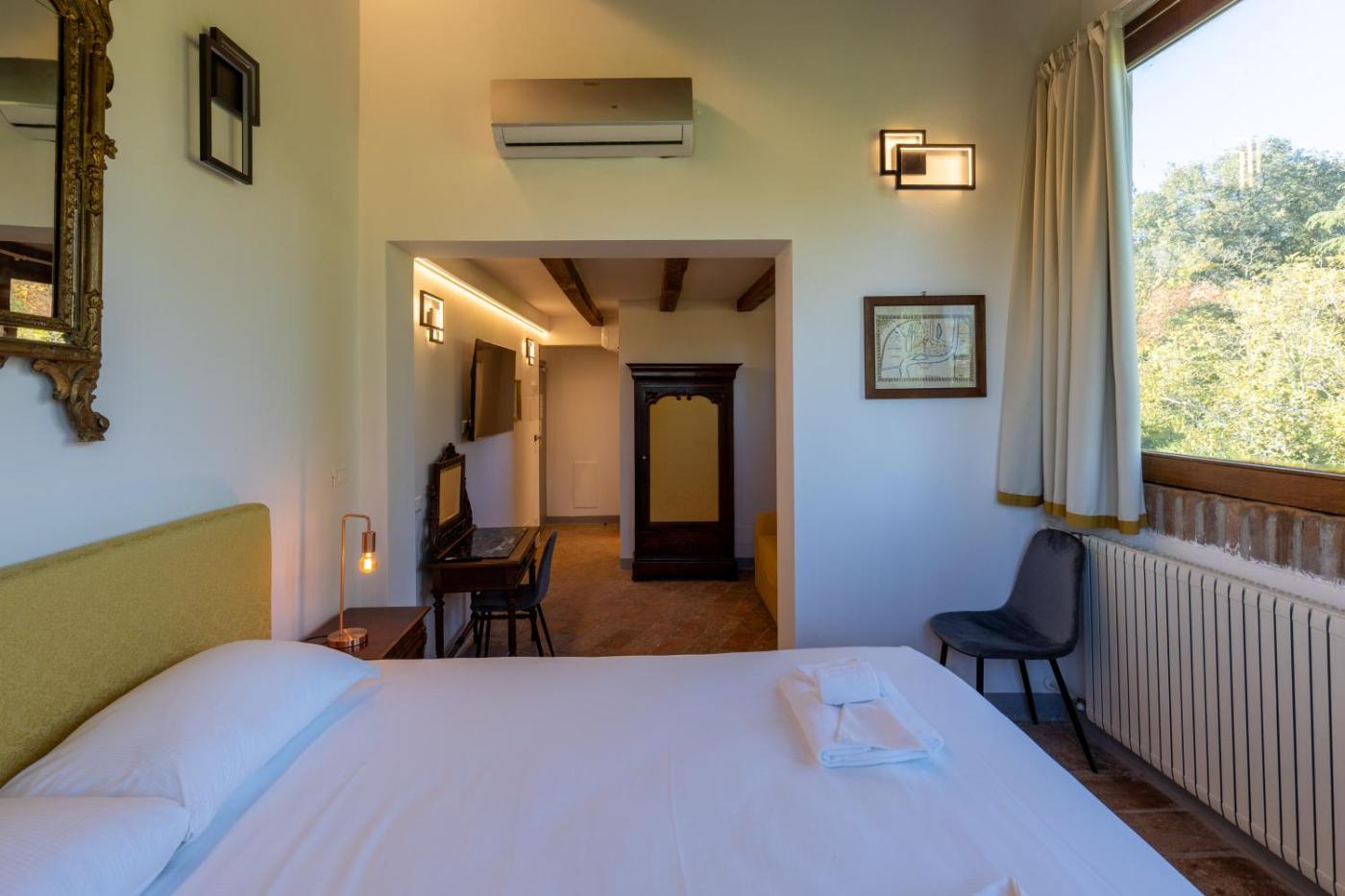 Camera Deluxe. This double rooms special feature is the pool with a view. Offering free toiletries, this double room includes a private bathroom with a shower, a bidet and a hairdryer. In the kitchen, guests will find a stovetop, a refrigerator, a dishwasher and kitchenware. Boasting an outdoor dining area, this double room also offers air conditioning, a tea and coffee maker and a flat-screen TV. The unit has 1 bed. ;